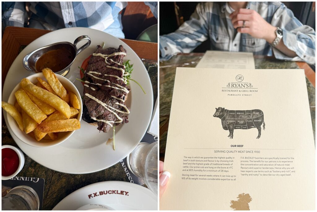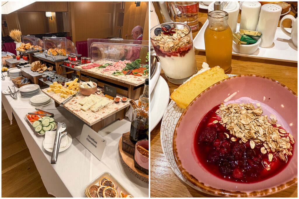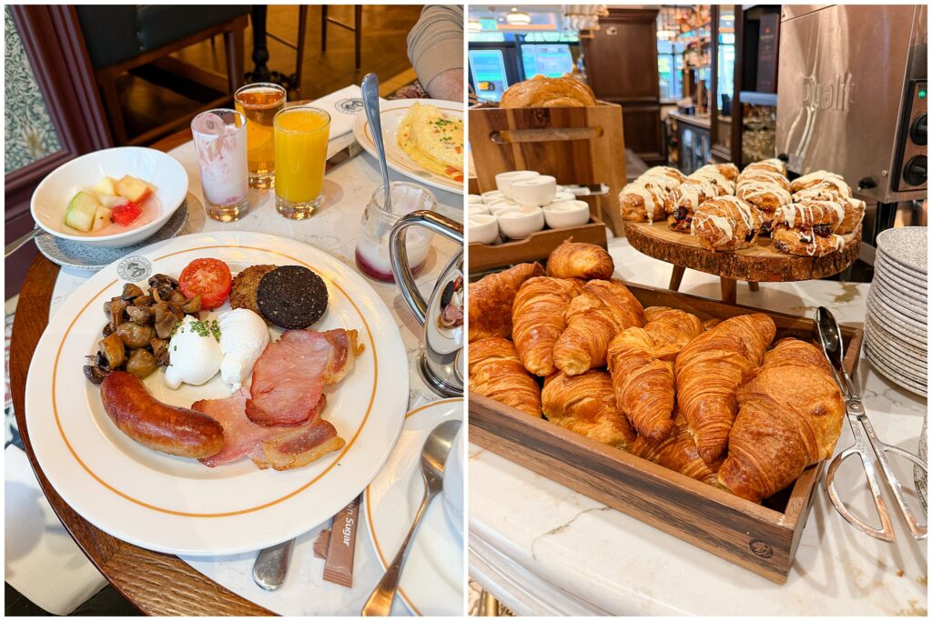 We had breakfast at the Mercantile and then hit the road! From Dublin we picked up a rental car and drove north to Belfast. We checked into The Fitzwilliam, one of the nicest hotels of our trip, and grabbed a quick pizza lunch before heading to Titanic Belfast. This museum ended up being one of the most fascinating experiences of the entire two weeks. It walked us through everything from the building of the ship to the discovery of its wreckage. That night, we had dinner at a really cool place called The Muddler’s Club, a Michelin-starred restaurant with a six-course tasting menu that felt like an experience in itself. I will forever dream about the amazing cherry tart dessert… The next day we fueled up with a huge breakfast at a cafe called Maggie May’s before driving out to the Giant’s Causeway. It poured rain the entire drive up there, but luckily we caught a break in the storms for our hike out there. Despite the less-than-ideal weather, we were glad we went. The landscape is unlike anything else in the world—endless hexagon-shaped stones stretching out into the sea. For those who don’t know, Belfast is in Northern Ireland, a separate country from the rest of Ireland, which is part of the UK. So we had to use British Pounds there, whereas the rest of Ireland uses Euros. Back in Belfast, we kept dinner simple, and Shawn ended the night playing a few rounds of pool at a local pub. Breakfast the next morning was at our hotel and it was excellent!