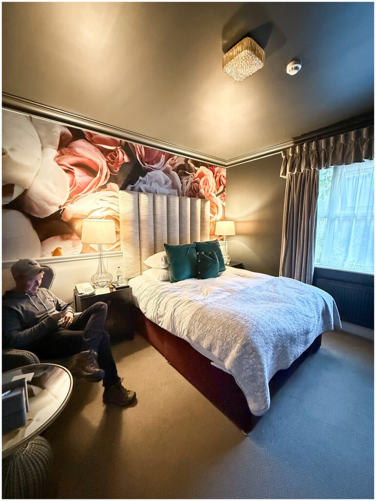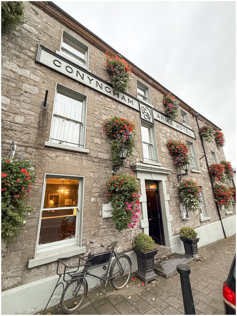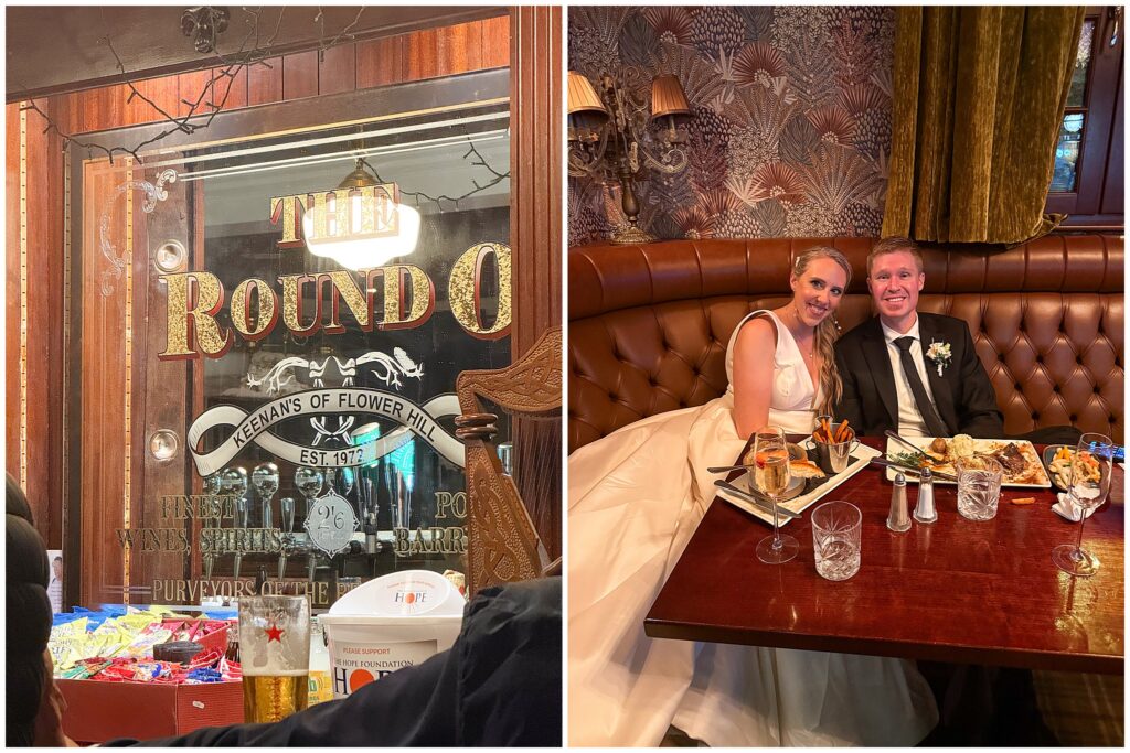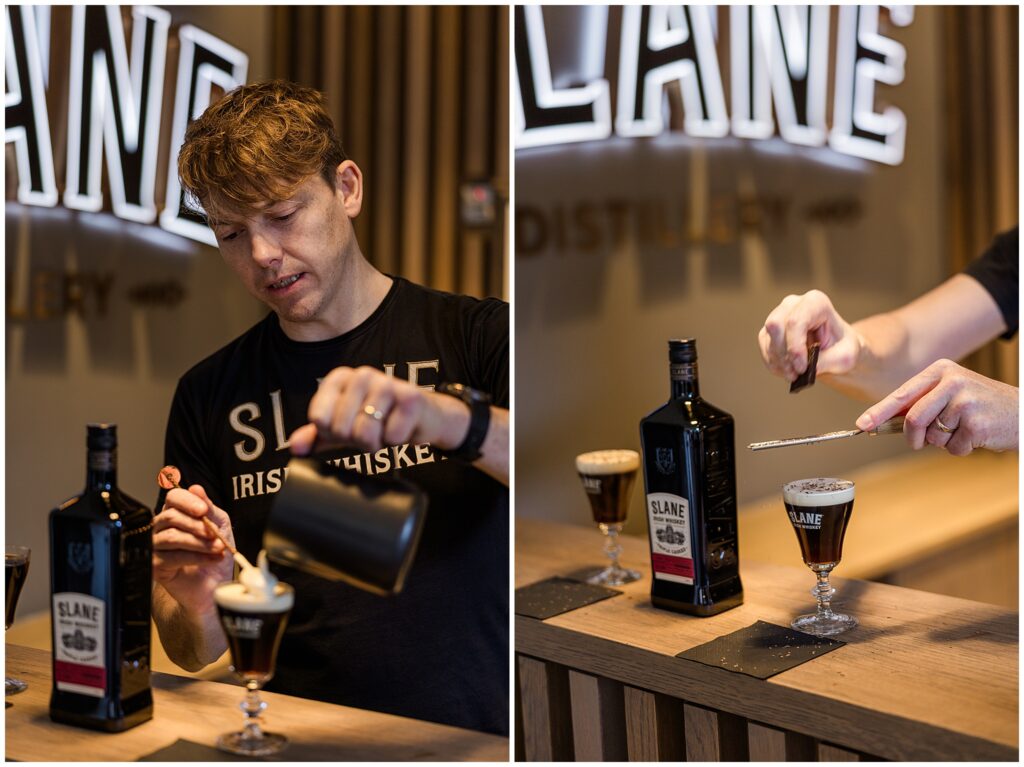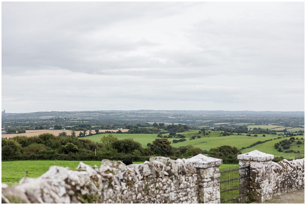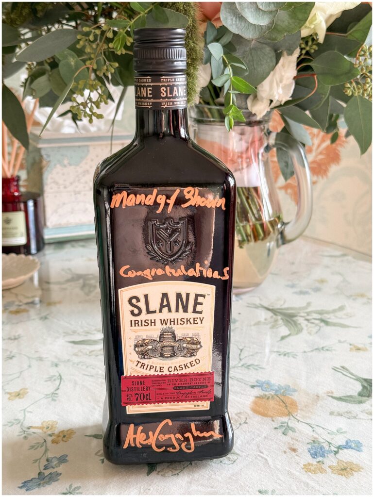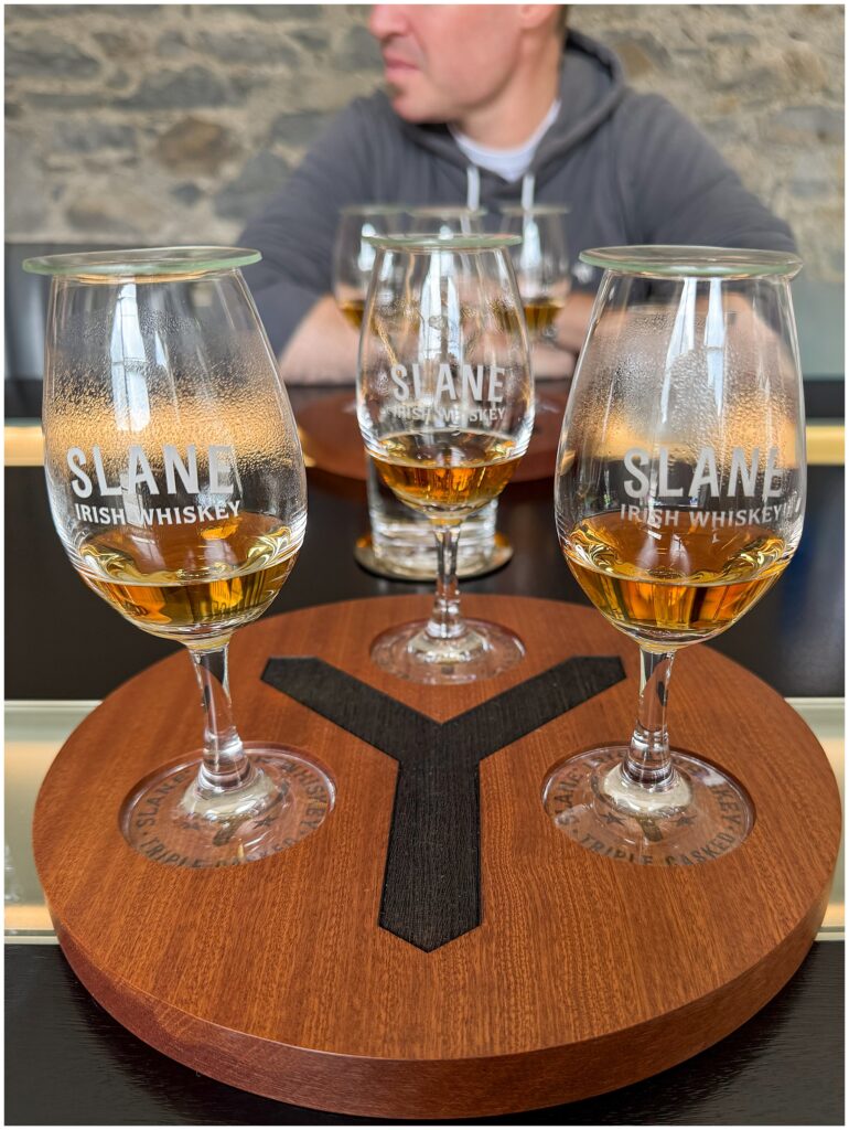 Then came Slane. This was the heart of the trip; the moment we’d been waiting five years for. We arrived at Slane Castle with my wedding dress tucked safely in our luggage and spent the evening taking photos in the place we were supposed to marry in 2020. We had the entire castle to ourselves, and I’ll never forget the feeling of walking through those grand halls in that gown that had never been worn. Halfway through our photoshoot, the rain started—because of course it did. But then, in true Irish fashion, the clouds broke just as we finished, and a rainbow stretched across the sky. It felt like Ireland itself was redeeming the story for us. We had dinner that night in a nearby town called Navan. And yes, I wore the dress! The following day we had another kind of once-in-a-lifetime moment: a private tour of Slane Distillery. The woman who had done my hair for the photos knew the guide personally and sent him a text. He opened up the distillery just for us. It started with delicious Irish coffees and ended with a whiskey tasting, and it was hands down the best tour of our trip. We also got a private tour of the castle before our departure, and a signed bottle of Slane Whiskey from Mr. Conyngham, the owner of the castle and distillery. After our tours, we drove out to the Hill of Slane and then had dinner at the Conyngham Arms Hotel.