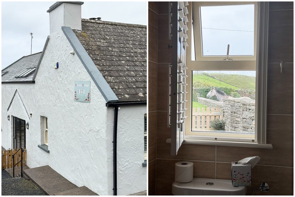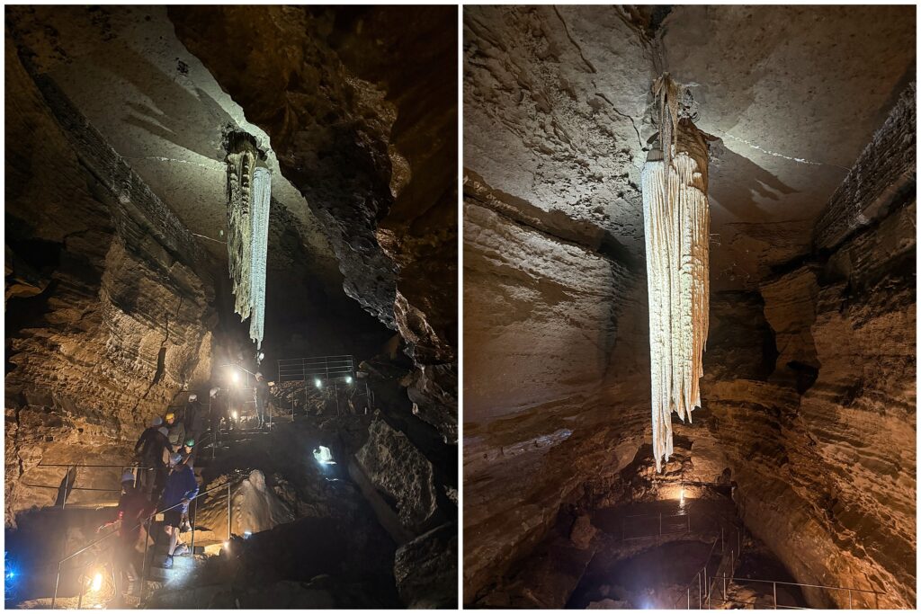 From Slane we drove west, stopping in Athlone to peek inside Sean’s Bar, which claims to be the oldest pub in Ireland. It sounded cooler than it actually was (and they didn’t serve food), so we quickly moved on to lunch at a café down the street. Eventually, we made it to Galway. I had pictured a smaller coastal town, but Galway felt much bigger, almost like Dublin. We spent the evening wandering the Latin Quarter, eating shepherd’s pie in a pub, and browsing in some of the shops. The next morning, we left Galway behind and headed to Doolin. The roads narrowed to what felt like one-lane paths through the countryside, and more than once we had to pull over to let another car pass. Doolin itself was charming—small, colorful, and full of life. We ate at The Ivy Cottage where I had the most delicious bowl of Atlantic chowder, then headed to the Cliffs of Moher. They took my breath away. Shawn was less impressed, but I could have stood there for hours staring at the waves crashing below. We ended the night with a pint and live traditional music in one of Doolin’s pubs. The next day, before leaving Doolin, we took a tour of the Doolin caves.