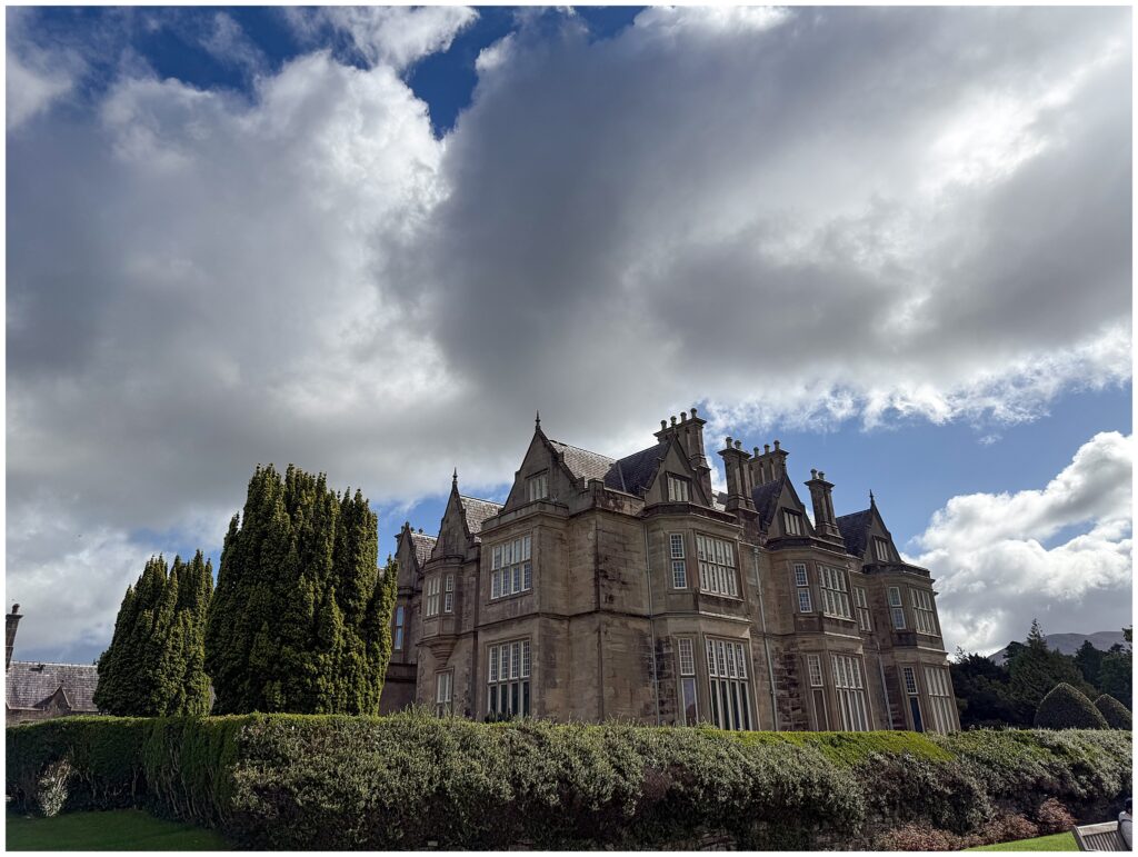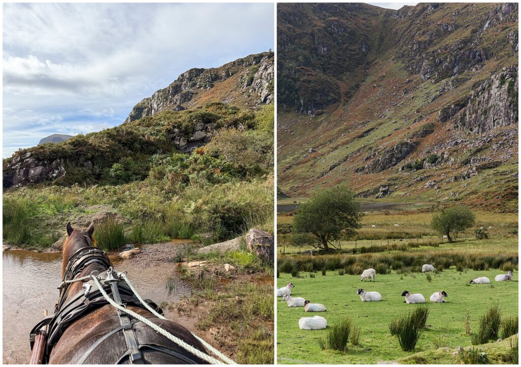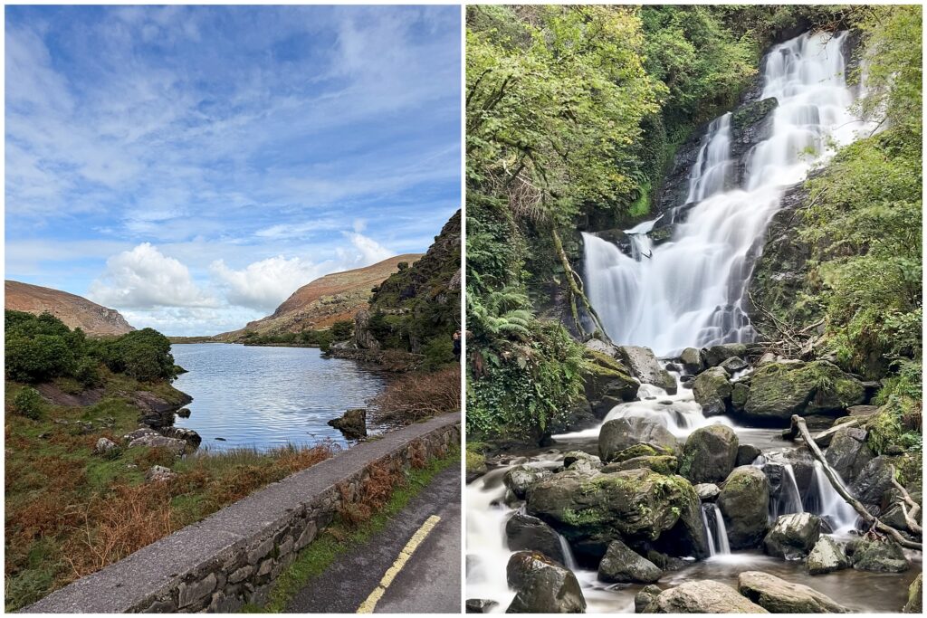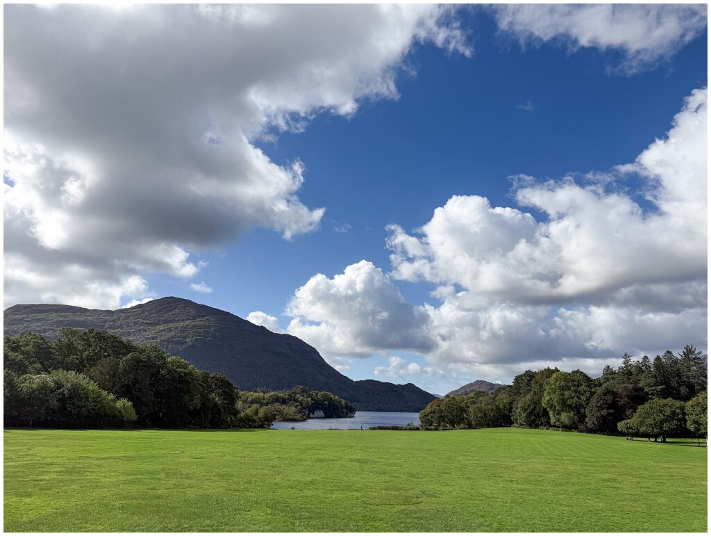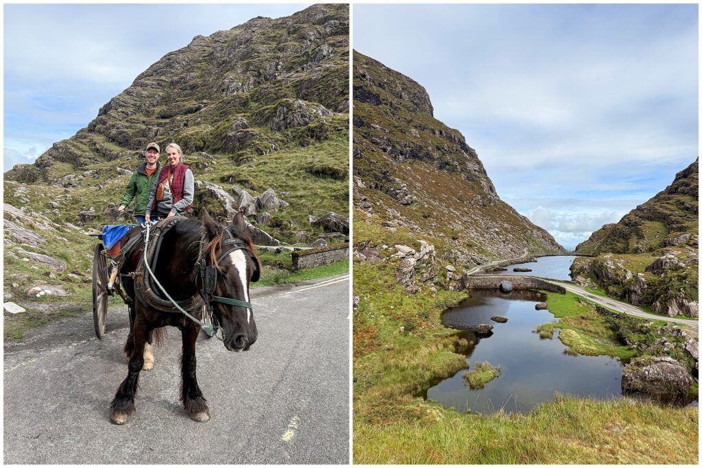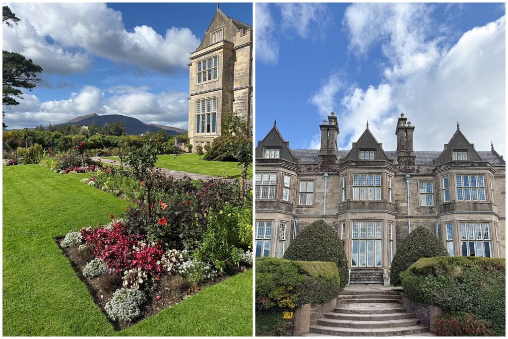 From there, we made our way to Killarney. We had to take our car on a ferry across a river to get there. We stopped at Ross Castle on the way in and luckily snagged the last tour of the day. Ross Castle was built in the 1400s and beautifully restored and furnished to show what it would have looked like back then. The setting—right on a lake with mountains in the background—was stunning. After settling into our hotel, we had dinner in the downtown area. I had already decided this was one of our favorite places so far. The next day confirmed it. Killarney National Park is the kind of place you could spend days exploring and never get bored. We took a horse-drawn buggy ride through the Gap of Dunloe, wandered to Torc Waterfall, and capped the day with a couples’ massage and dinner followed by live music at a pub. Before we left Killarney, we stopped at Muckross House, a sprawling estate built in 1843 with manicured grounds that are now part of the national park.