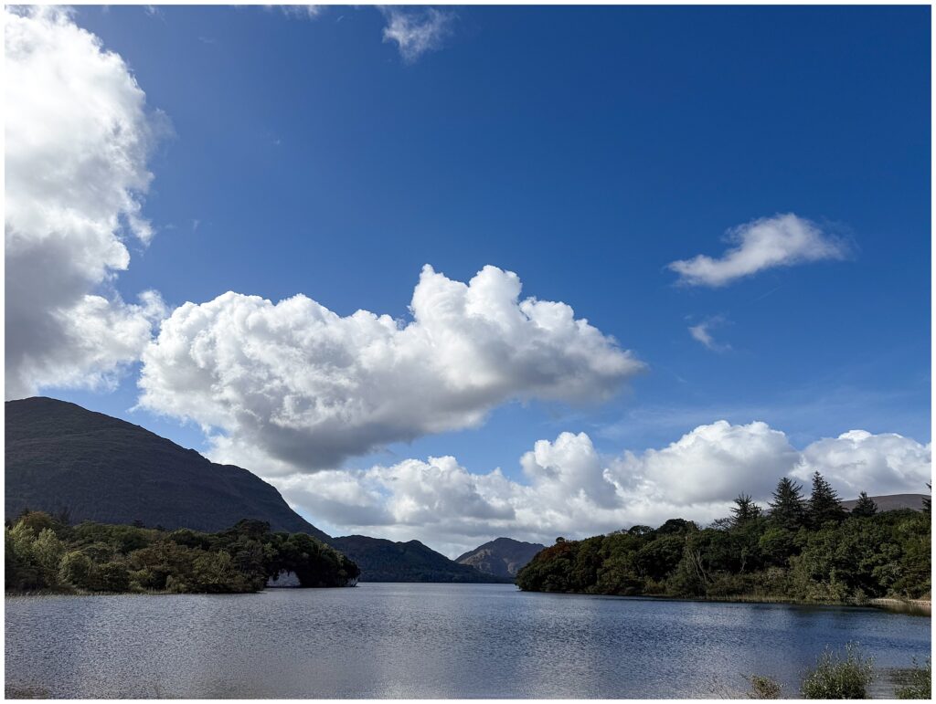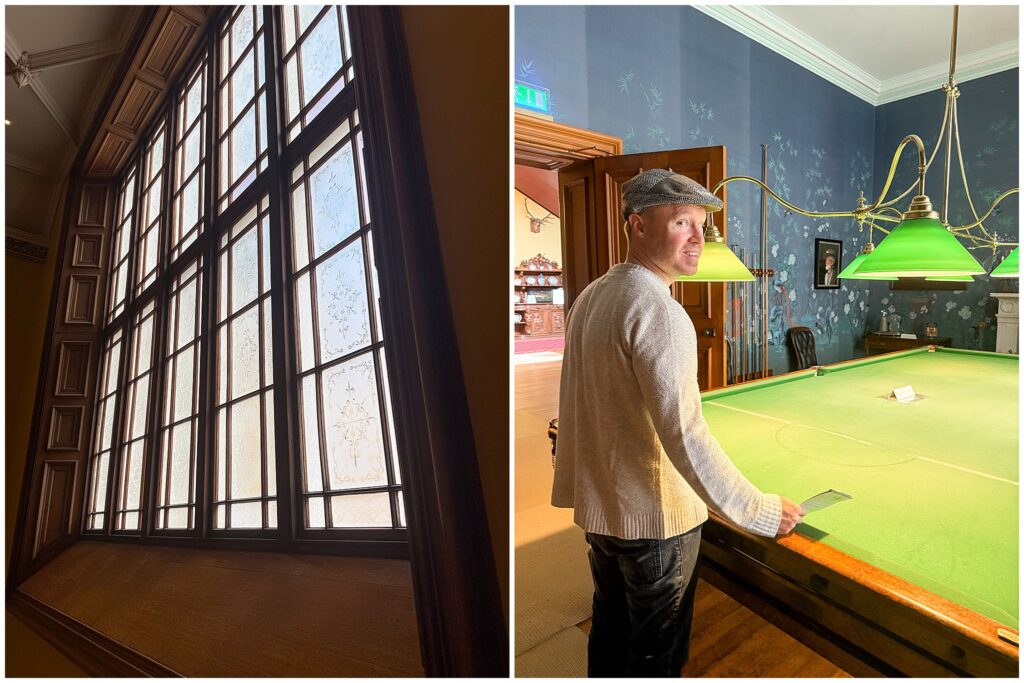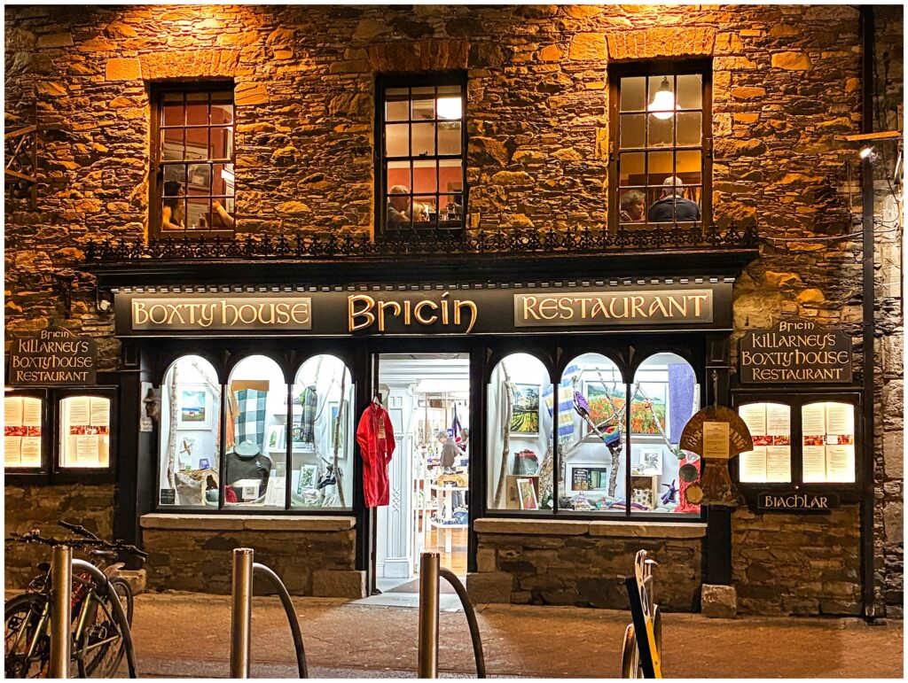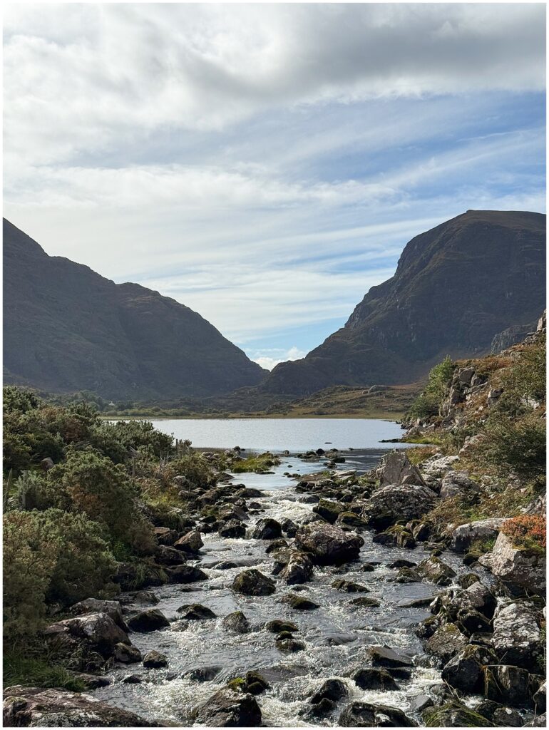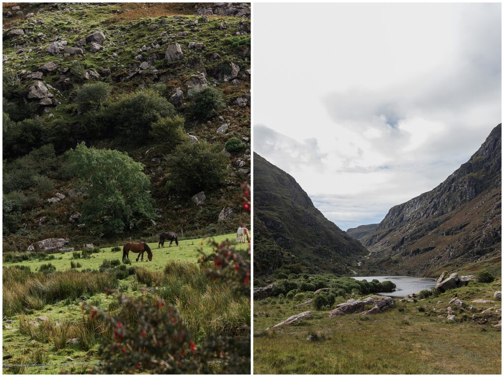 From there, we made our way to Killarney. We had to take our car on a ferry across a river to get there. We stopped at Ross Castle on the way in and luckily snagged the last tour of the day. Ross Castle was built in the 1400s and beautifully restored and furnished to show what it would have looked like back then. The setting—right on a lake with mountains in the background—was stunning. After settling into our hotel, we had dinner in the downtown area. I had already decided this was one of our favorite places so far. The next day confirmed it. Killarney National Park is the kind of place you could spend days exploring and never get bored. We took a horse-drawn buggy ride through the Gap of Dunloe, wandered to Torc Waterfall, and capped the day with a couples’ massage and dinner followed by live music at a pub. Before we left Killarney, we stopped at Muckross House, a sprawling estate built in 1843 with manicured grounds that are now part of the national park.