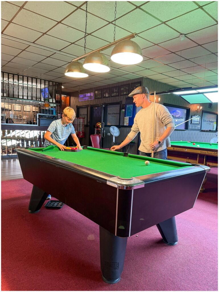 From there we drove into Cork. To be completely honest, Cork was not our favorite. Another city that was bigger than I anticipated, it felt crowded, hilly, and a little dirty. We grabbed burgers for lunch and decided to check out a local pool hall called The Crucible. We were shocked when we walked in and saw nothing but a bunch of kids. Apparently billiards is quite a thing among Irish teens! Shawn played a couple racks with a kid named Calvin, who definitely put up quite a challenge. After wandering the city center, we ended the day with pizza that was about as “meh” as the rest of our Cork experience. Thankfully, the surrounding towns made our time in Cork worth it. We drove to Blarney Castle the next morning and kissed the famous stone, then headed to Kinsale, a pastel-colored coastal town that was much more our speed. We wandered Charles Fort, checked out the shops downtown, and found ice cream before heading back to Cork for dinner. The day ended with Shawn crushing me at bowling. The next day, we left Cork behind for good and stopped in Cobh. A beautiful harbor town, Cobh is the second largest harbor in the world, and the Titanic’s last port of call before it sank. We decided to do the Titanic Experience there as well, where each guest receives the identity of a real passenger who boarded at Cobh. The exhibit walks you through what sailing on the Titanic was like, and at the end, you learn if you survived. Shawn and I both did!