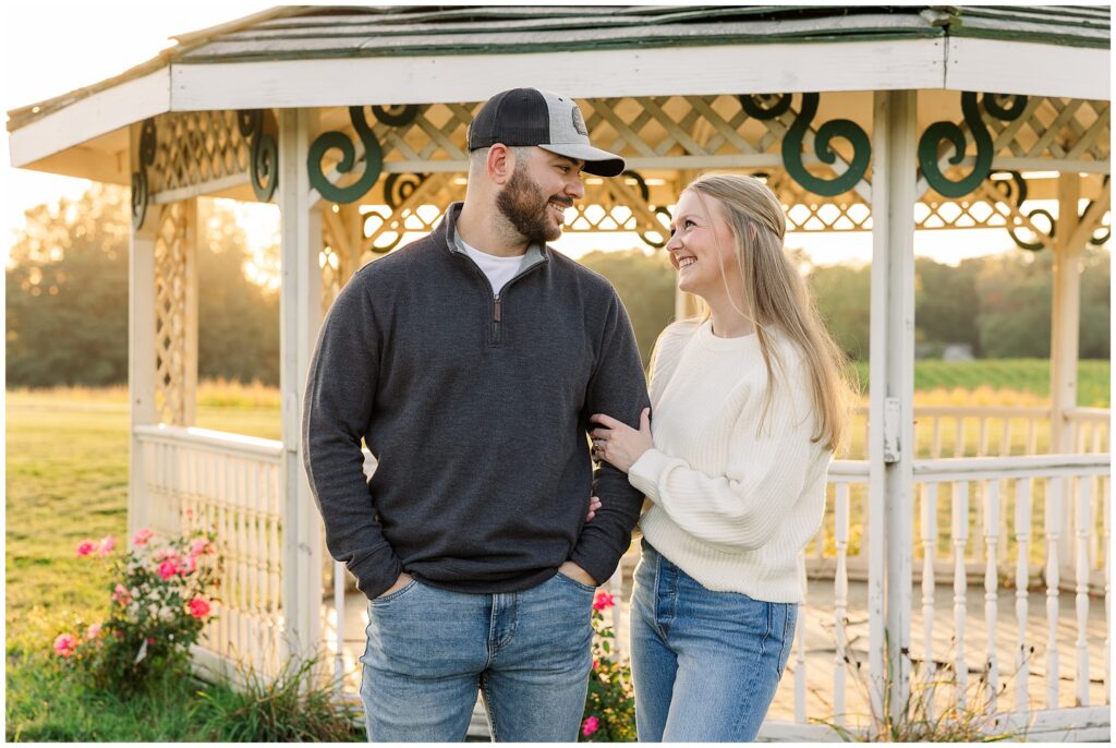 For their vineyard engagement session, we met at 12 Corners Vineyard in Benton Harbor on one of those October days that felt like summer was making a comeback. It was warm—unseasonably warm—and the sun was bright and strong. They had planned for cozy fall weather and planned outfits with sweaters. Instead, we laughed our way through the heat, finding bits of shade between the vines and making the most of every golden patch of light.