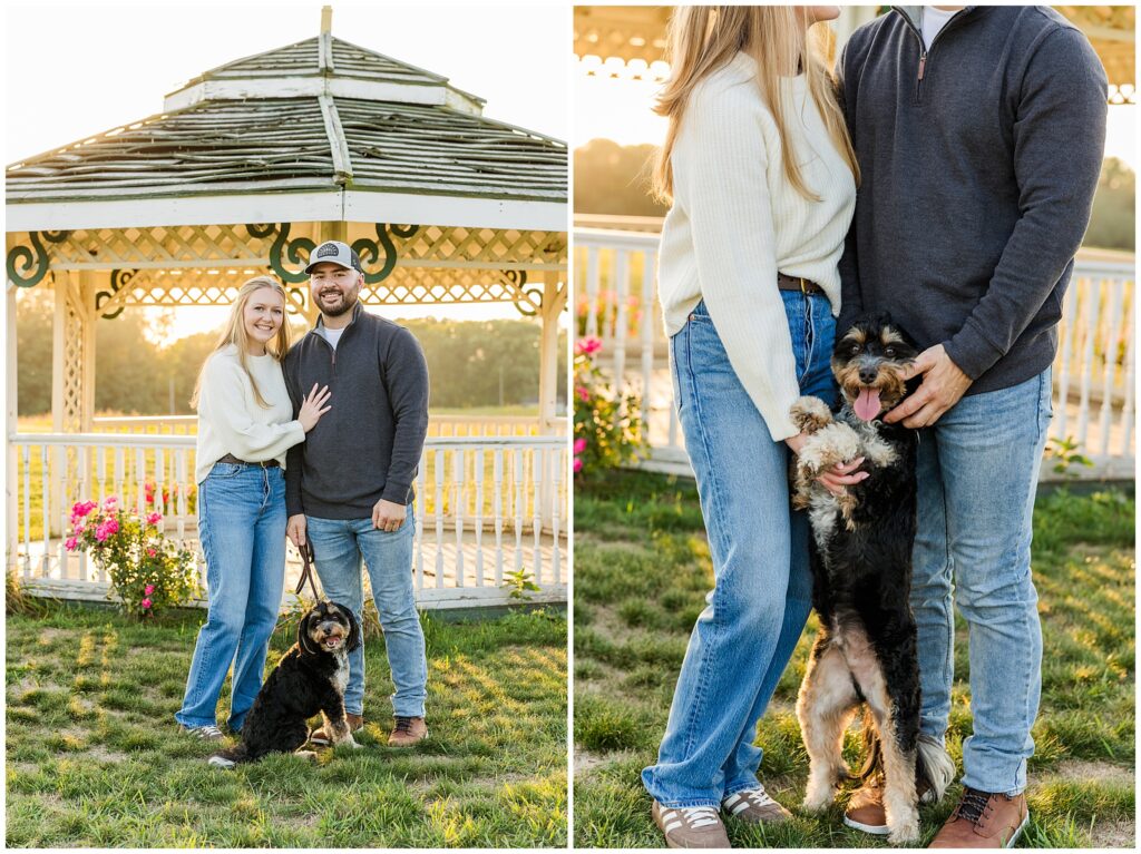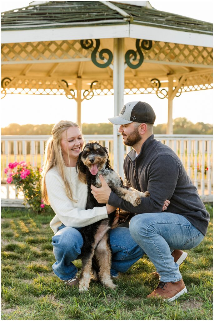 Even with the unexpected weather, these two never missed a beat. Their joy is effortless, their laughter constant, and their connection unshaken by the temperature. And just when I thought the evening couldn’t get sweeter, their dog Archie joined us for the final few portraits. He definitely stole the show for a few moments!